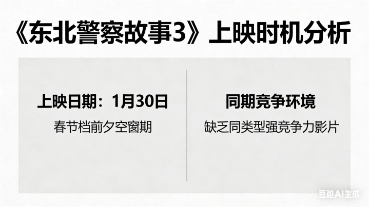 4. 上映时机:1月30日处于春节档前夕的“空窗期”,同期缺乏同类型强竞争力影片,这给了它一个相对宽松的排片和口碑发酵空间。